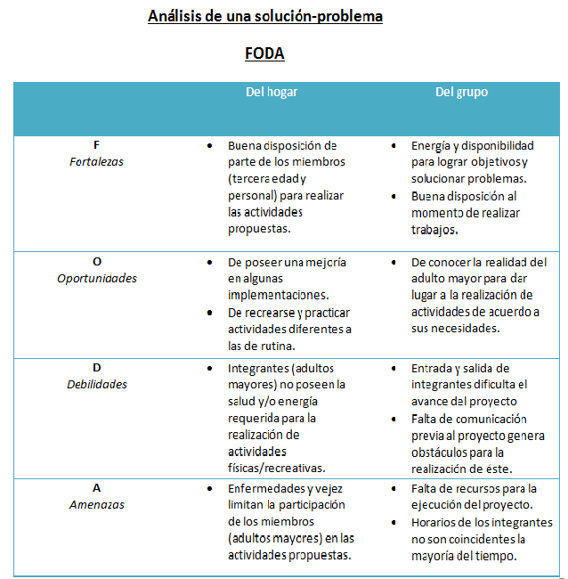 Ejecutar un proyecto en base a las necesidades del hogar previamente analizadas, realizando un taller recreativo a los adultos mayores donde se estimule su participación. Además que el mismo taller sirva como recurso, que se destinará al orden y selección de sus vestimentas.