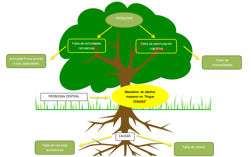 El problema central que percibimos en el Hogar “Orianita” es el abandono hacia los adultos mayores, donde la falta de actividades recreativas y la falta de estimulación cognitiva atenúan el problema central.